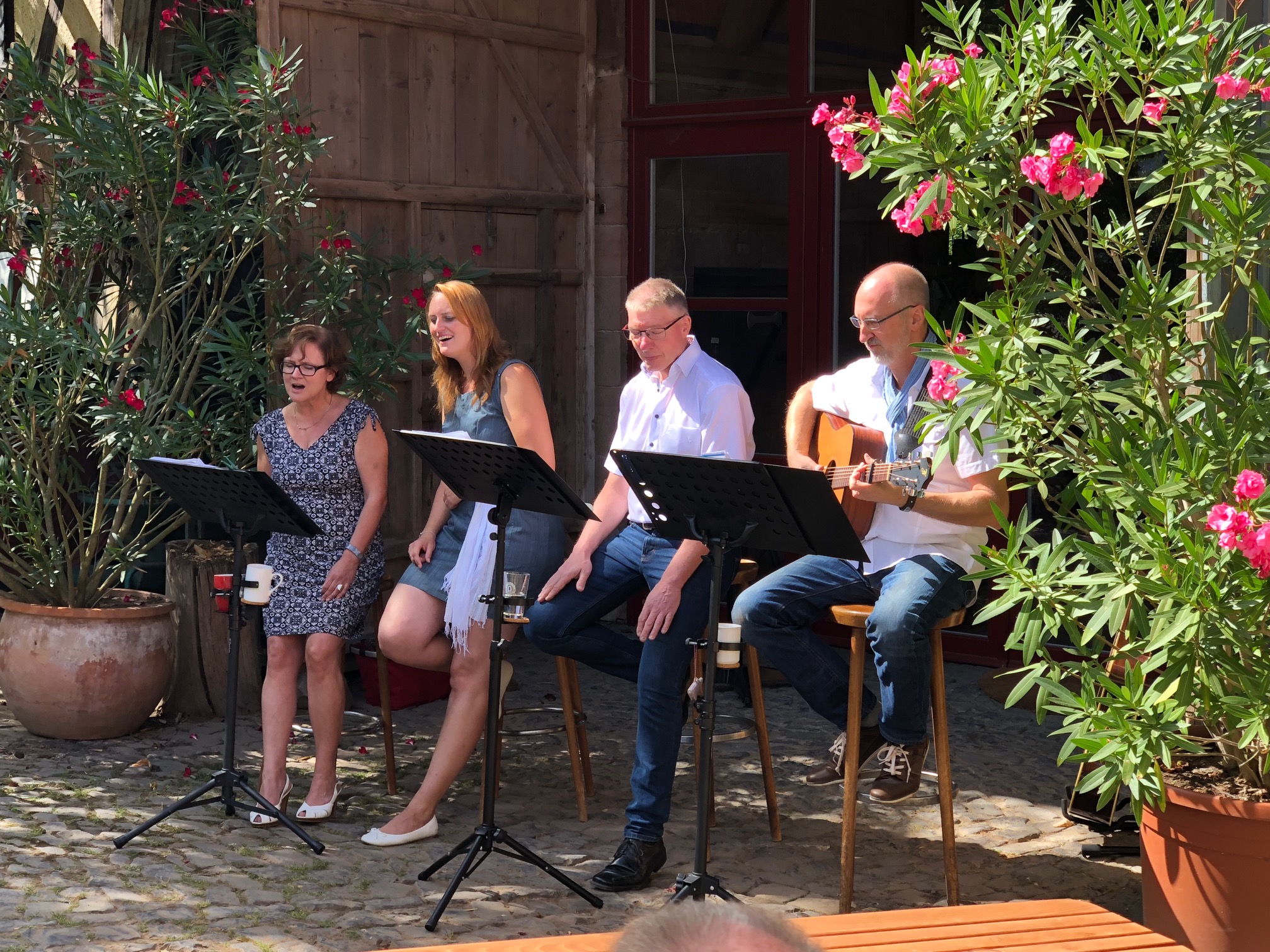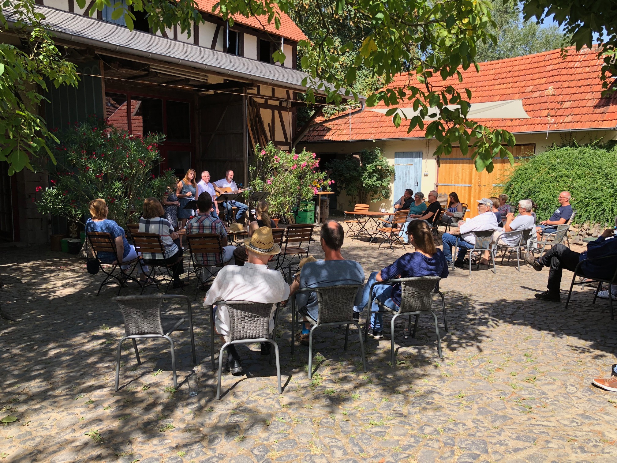 Unser erstes Hofkonzert! Im wunderbaren Ambiente des "Hofes Rieck" gaben wir in Fronhausen-Sichertshausen unser Bestes und sangen bei supergutem Wetter und vor einem toll mitgehenden Publikum.